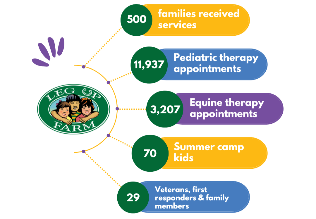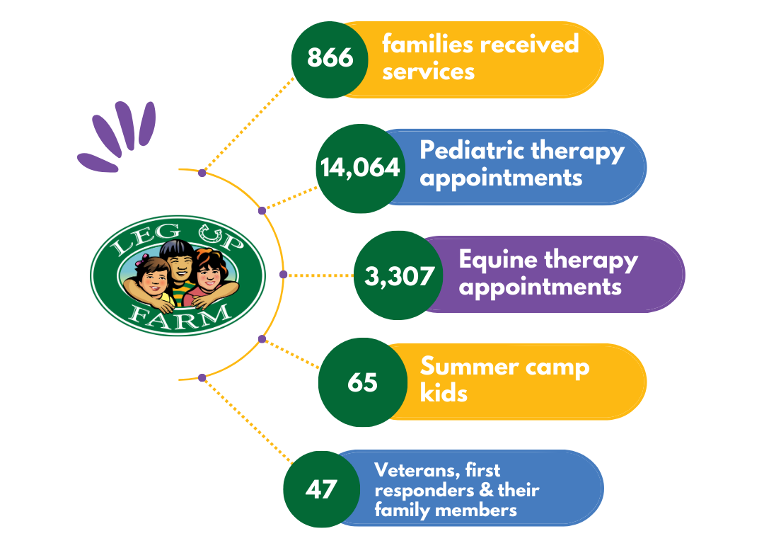 Leg Up Farm’s mission is to enrich the lives of individuals and families with special needs and unique challenges, through support and customized programs. Since opening in 2010, we have provided services for more than 3,750 individuals.