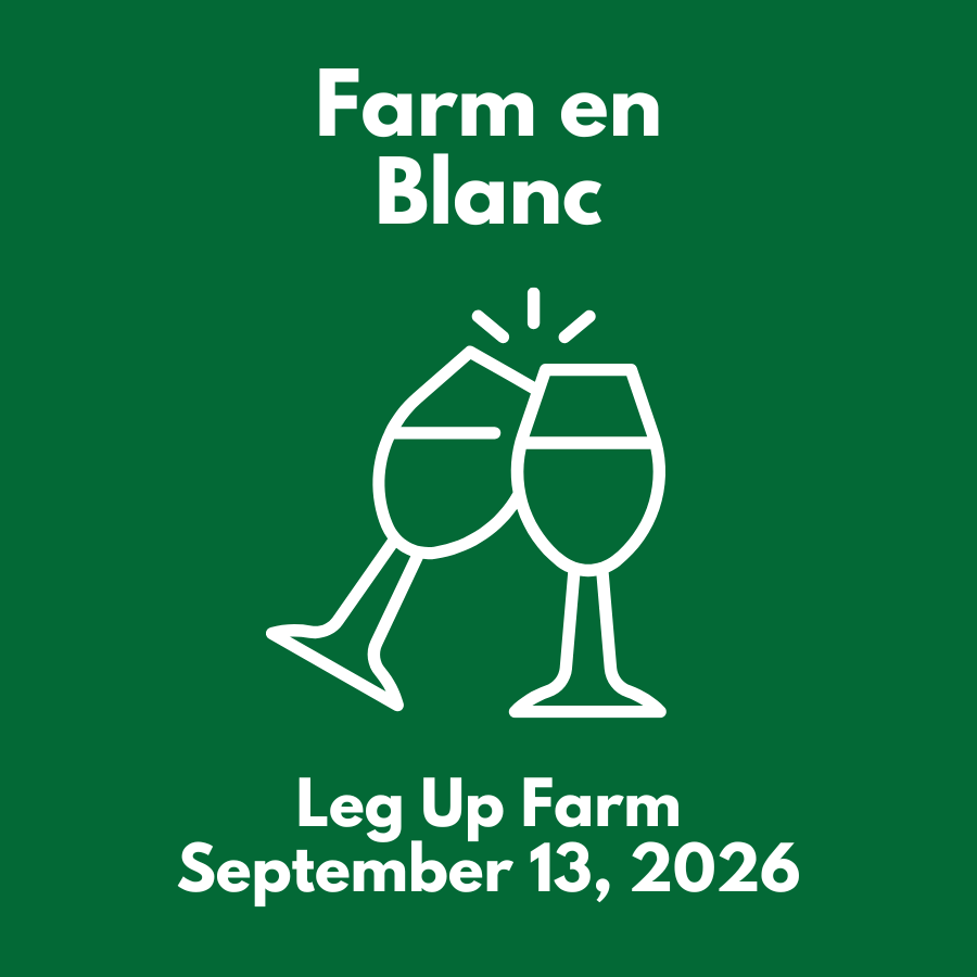 Dress in mostly-white attire for a night out at Leg Up Farm. Enjoy deliciously prepared food, bid on unique auction items, and experience all that Leg Up Farm has to offer.